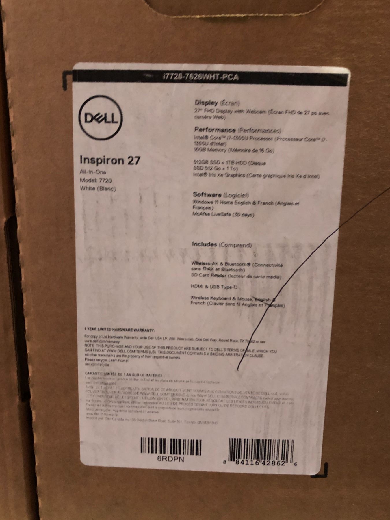 NEW Dell Inspiron - 27” All-in-One PC - White (Intel Core i7-1355U/512GB SSD/1TB HDD/16GB RAM) - i7720-7626WHT-PCA (retail $1400)