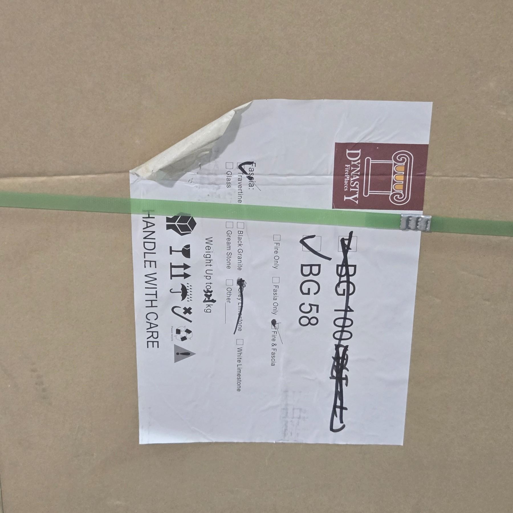 NEW Dynasty Electric Fireplace - Model BG 58, Travertine/Fire & Fascia, New in Box (Content & Condition unknown)