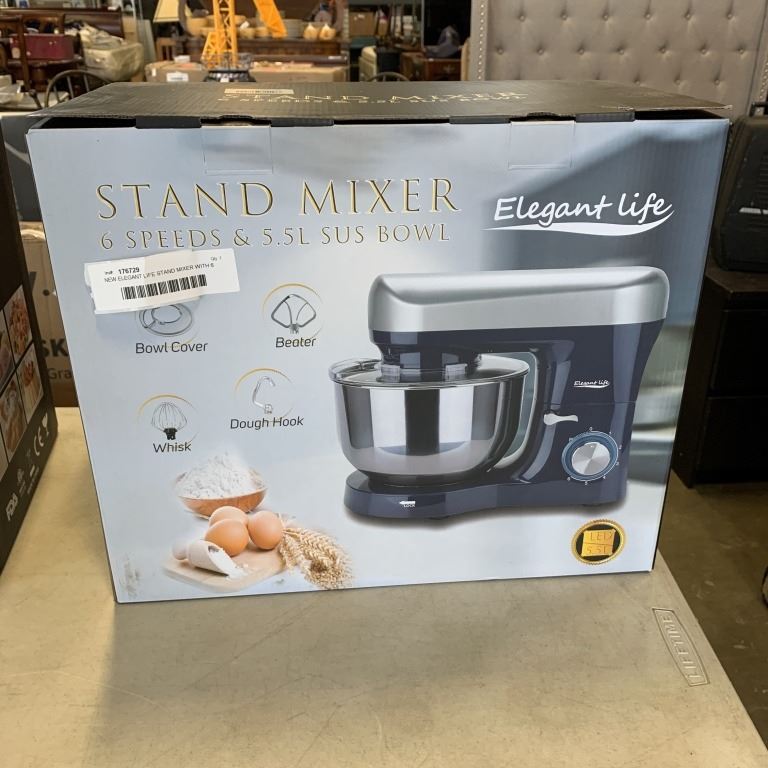 NEW ELEGANT LIFE STAND MIXER WITH 6 SPEEDS AND 5.5 LITRE STAINLESS BOWL
