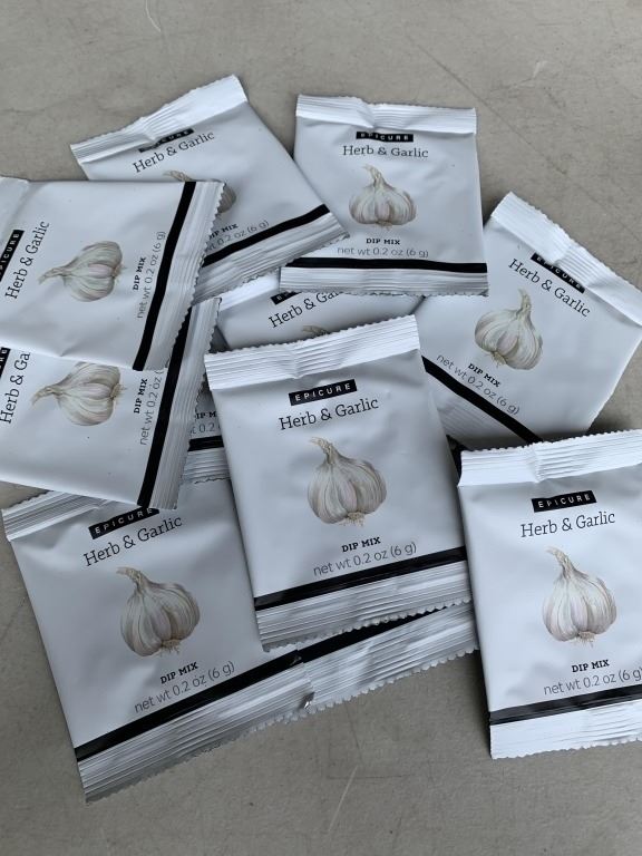 NEW EPICURE HERB AND GARLIC DIP MIX, 6G BAG, APPROX 100 TOTAL