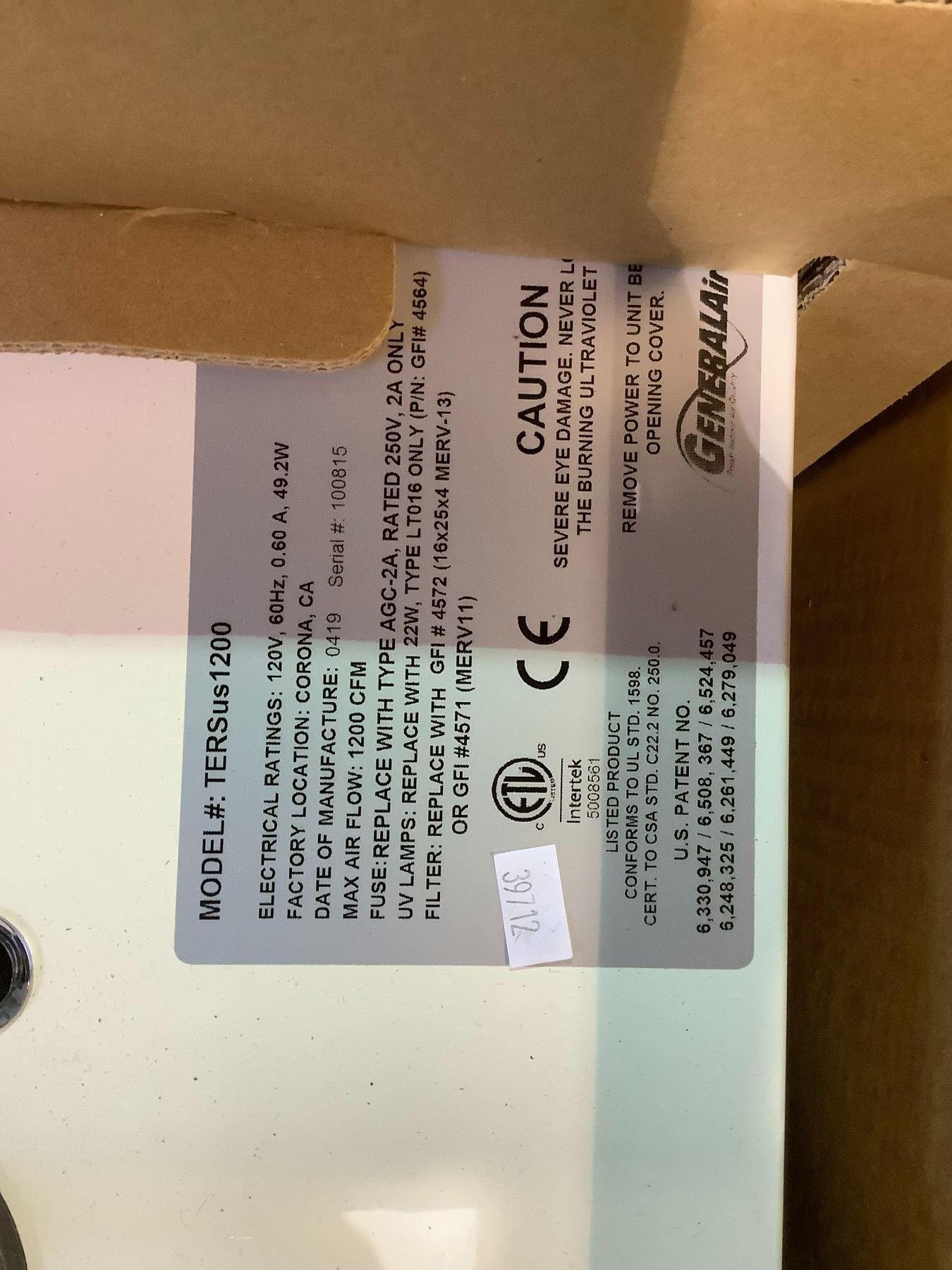NEW GENERAL AIRE TERSUS1200 AIR PURIFICATION SYSTEM