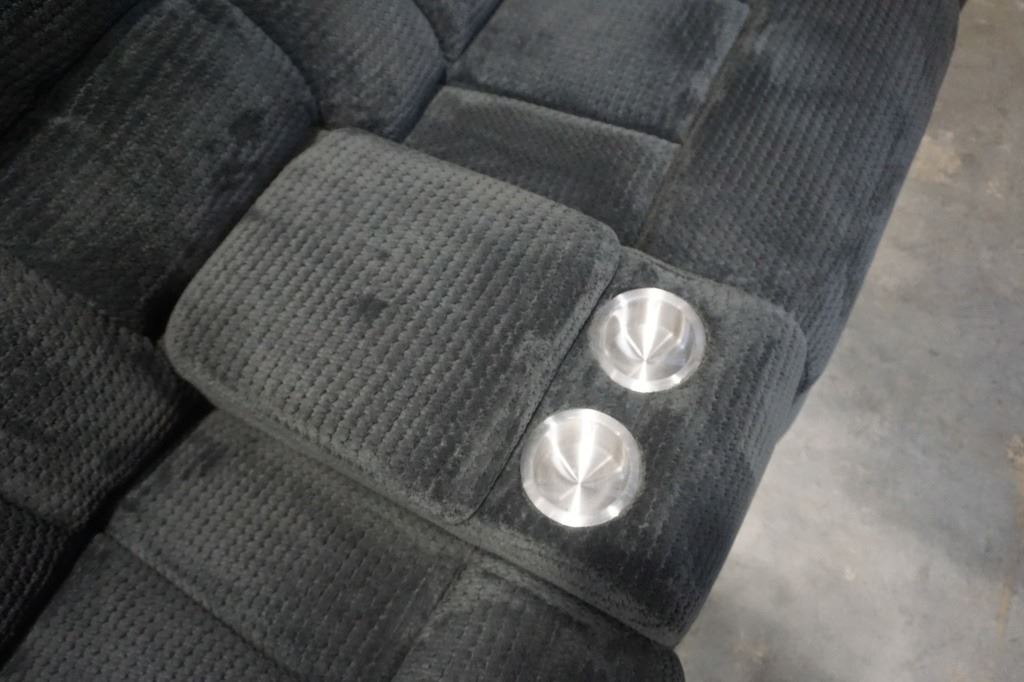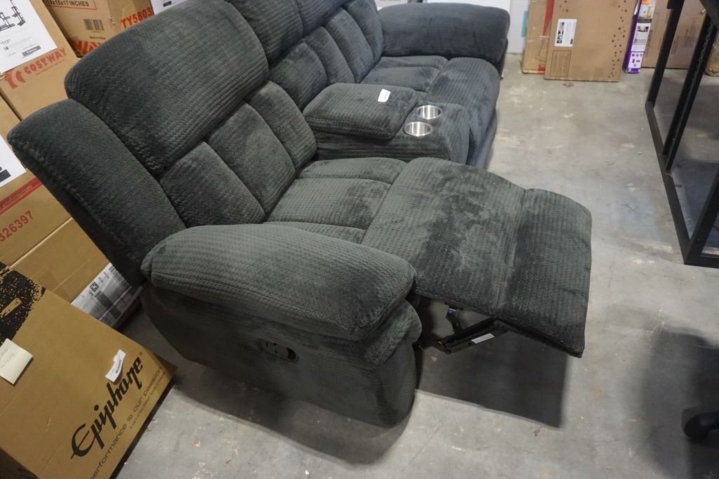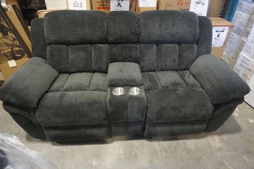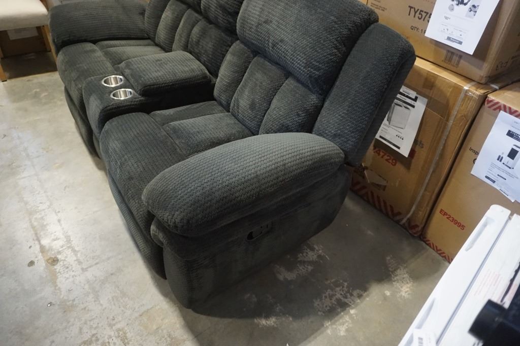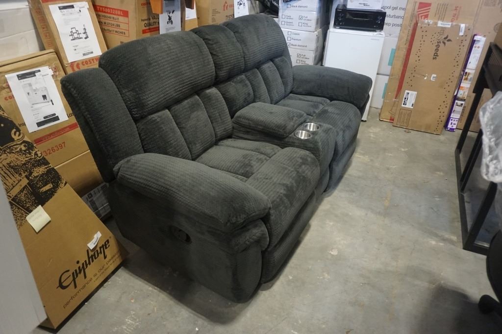NEW GREY DOUBLE RECLINING SOFA WITH CENTRE CONSOLE RETAIL $1499