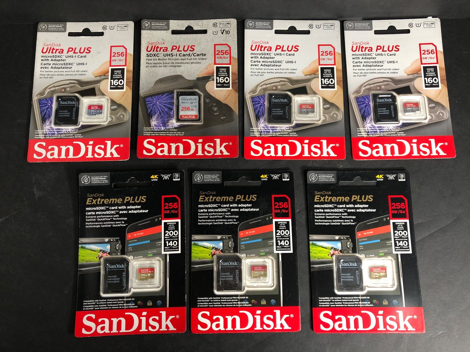 NEW Group of 6 MicroSDXC UHS-I Card w/ adapter & 1 SanDisk Ultra Plus SDXC UHS-I Card