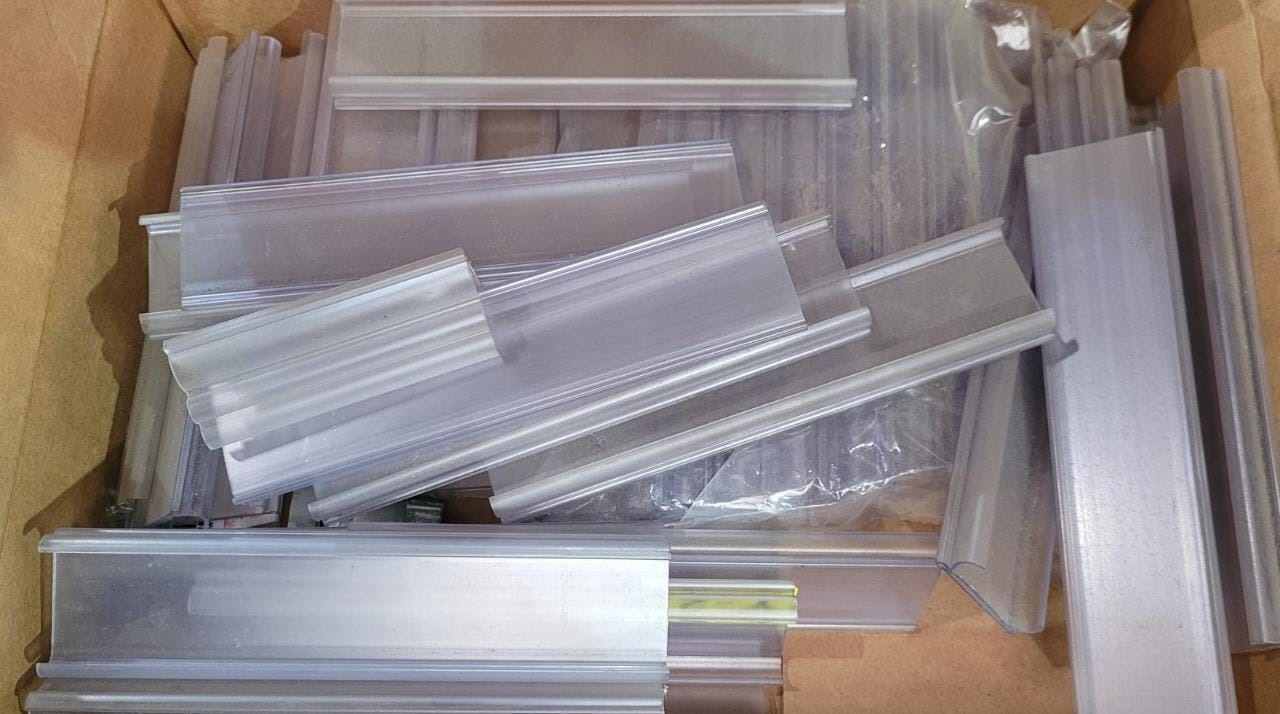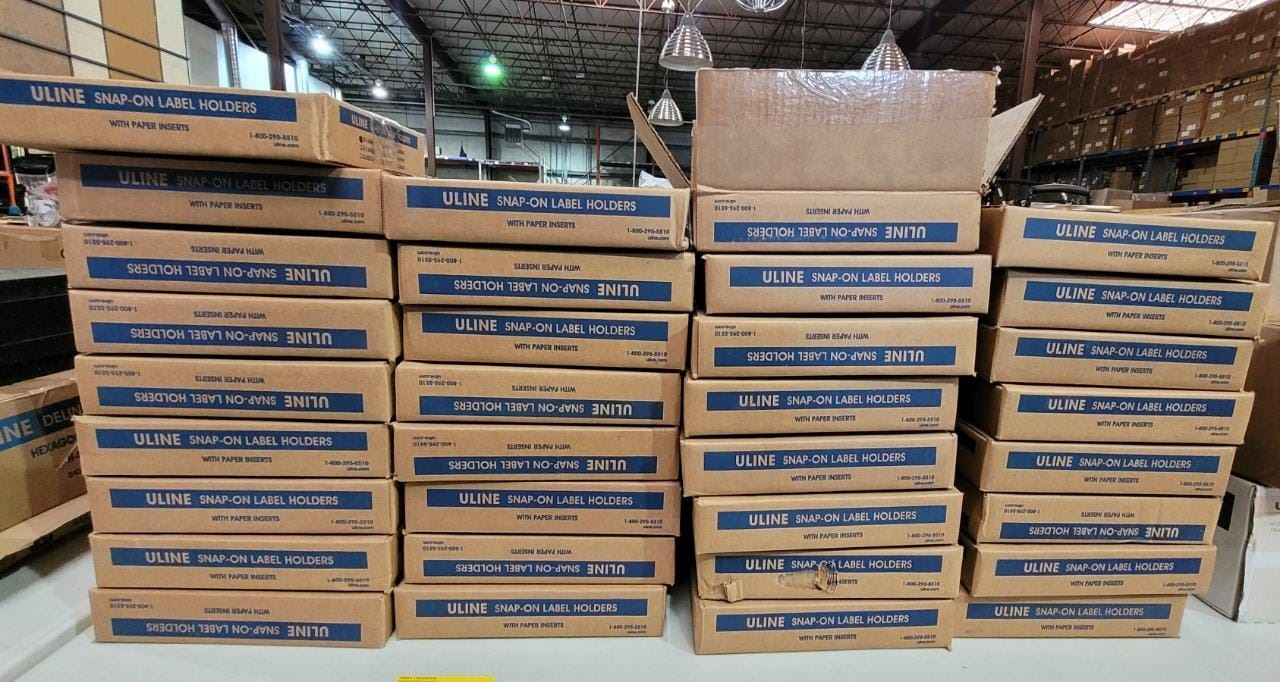NEW Group of approx 60 Uline snap-on label holders w/ paper inserts - model S-14461bx