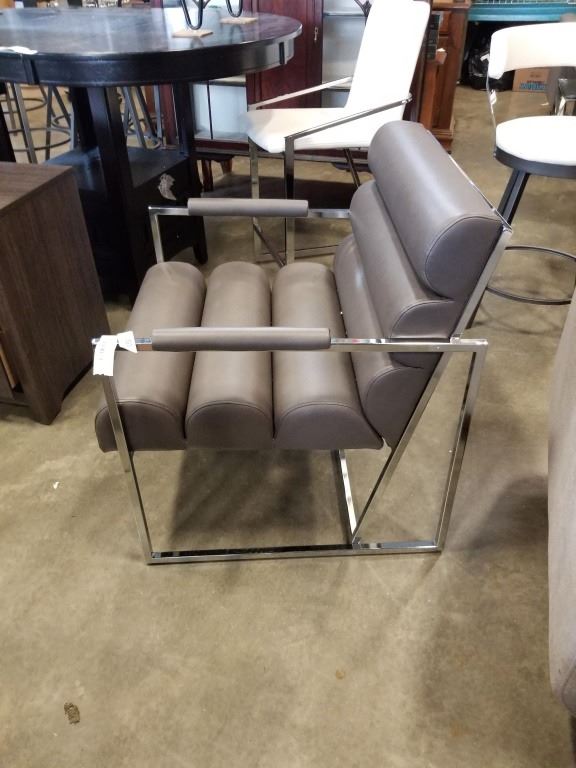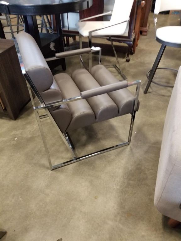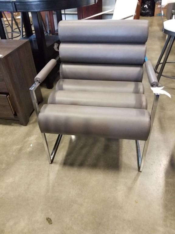 NEW HOME ELEGANCE MODERN GREY AND CHROME LOUNGE CHAIR