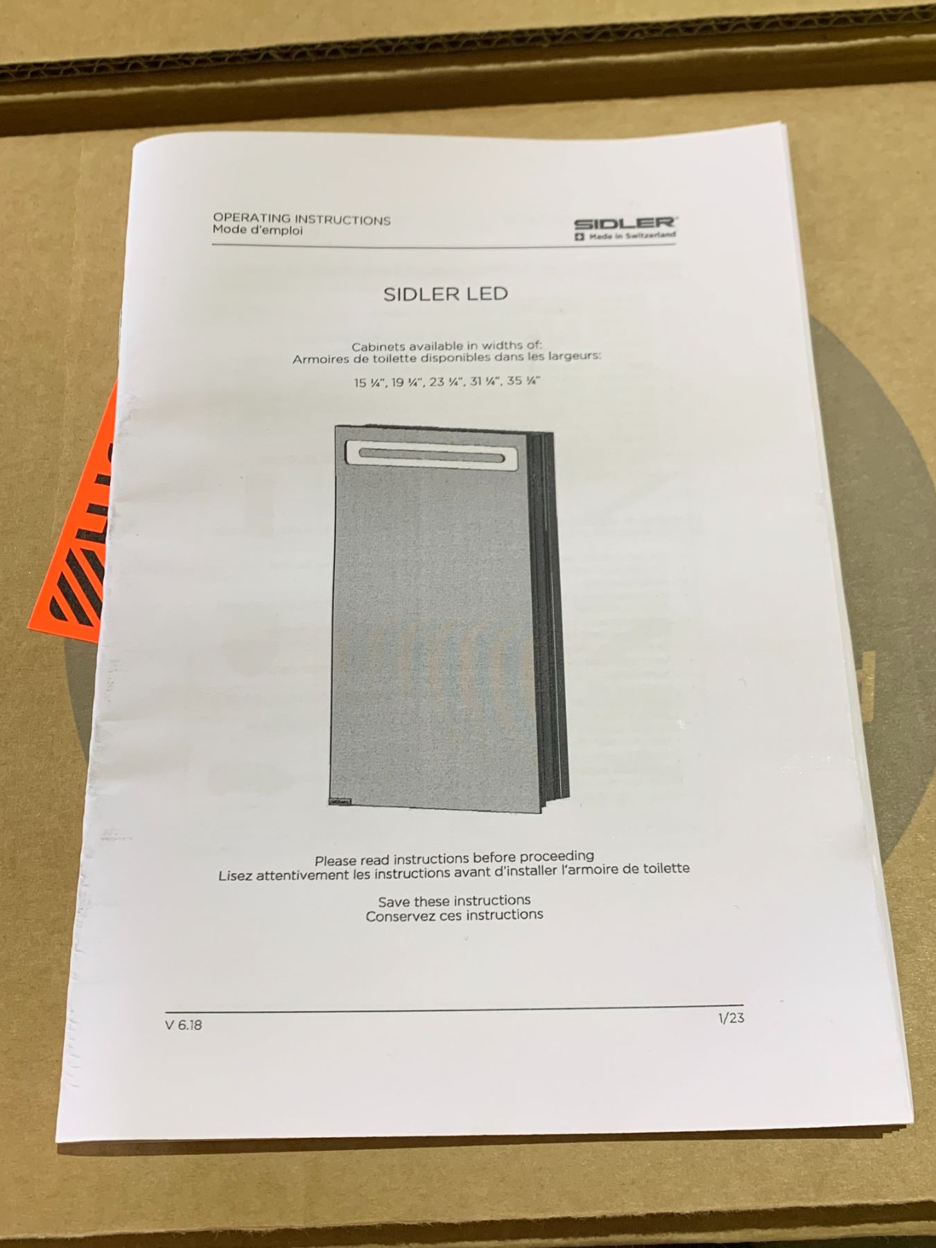 *NEW IN BOX* SIDLER DIAMANDO 1/ 15.25" L LED MIRRORED MEDICINE CABINET MODEL 31.1704010