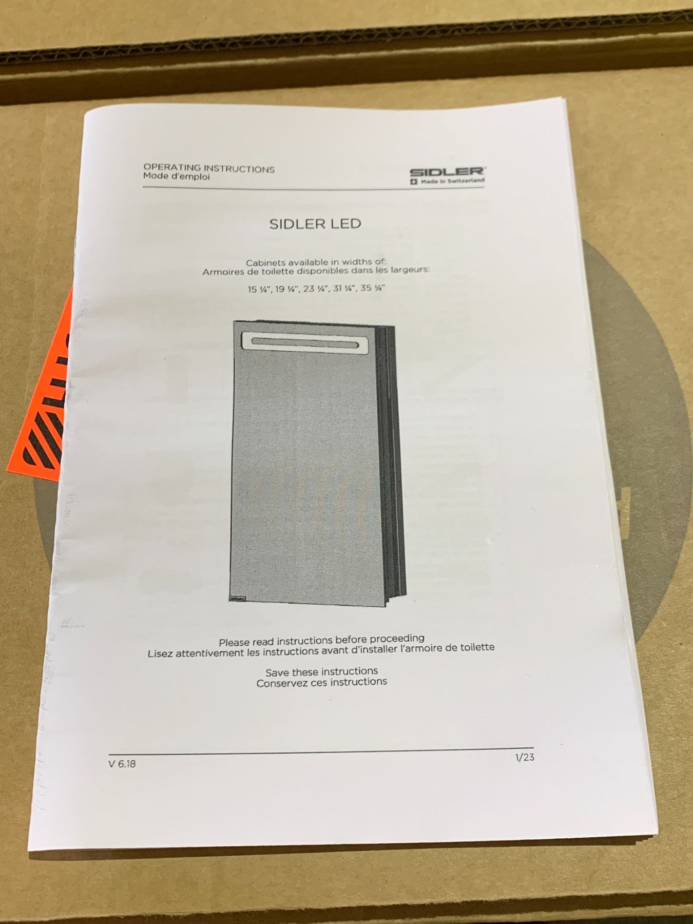 *NEW IN BOX* SIDLER DIAMANDO 1/ 23.25" R LED MIRRORED MEDICINE CABINET MODEL 31.1706020