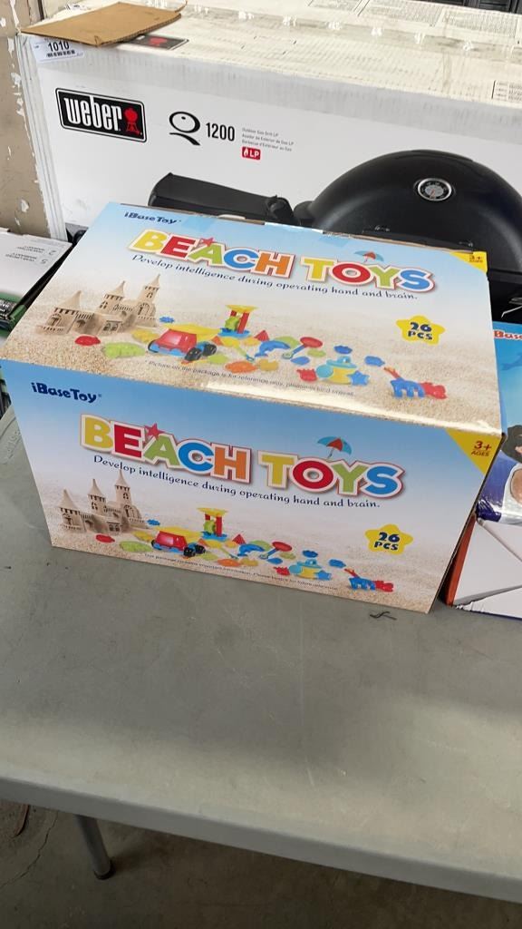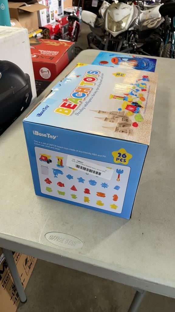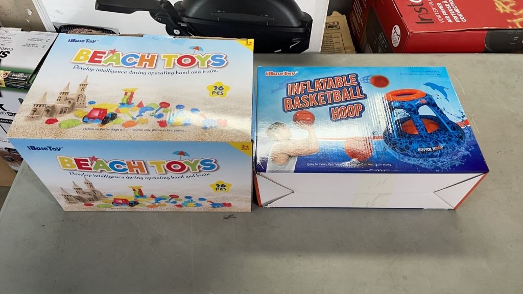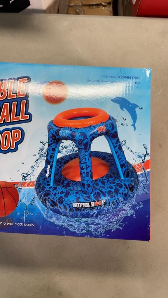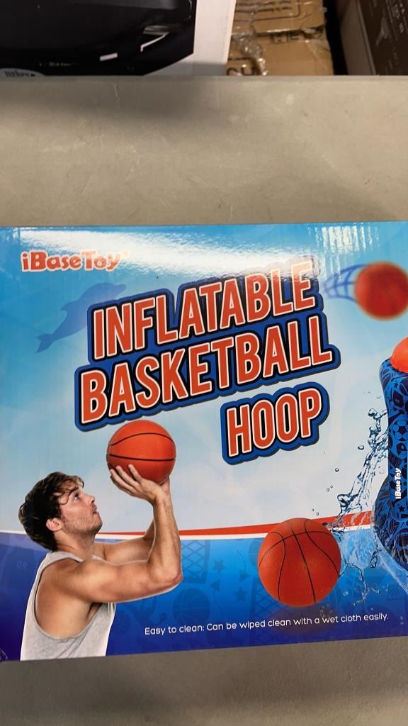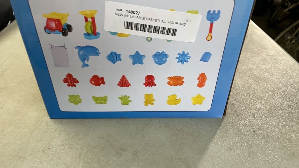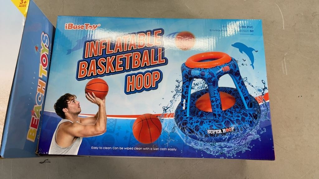 NEW INFLATABLE BASKETBALL HOOP AND 26 PC BEACH TOYS