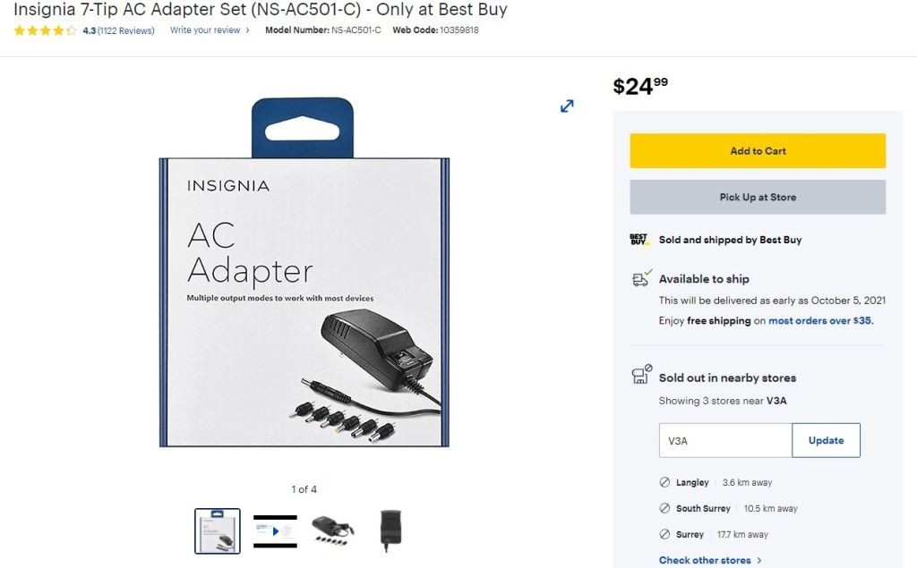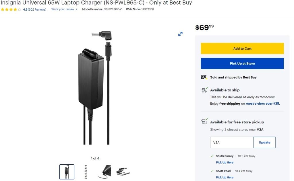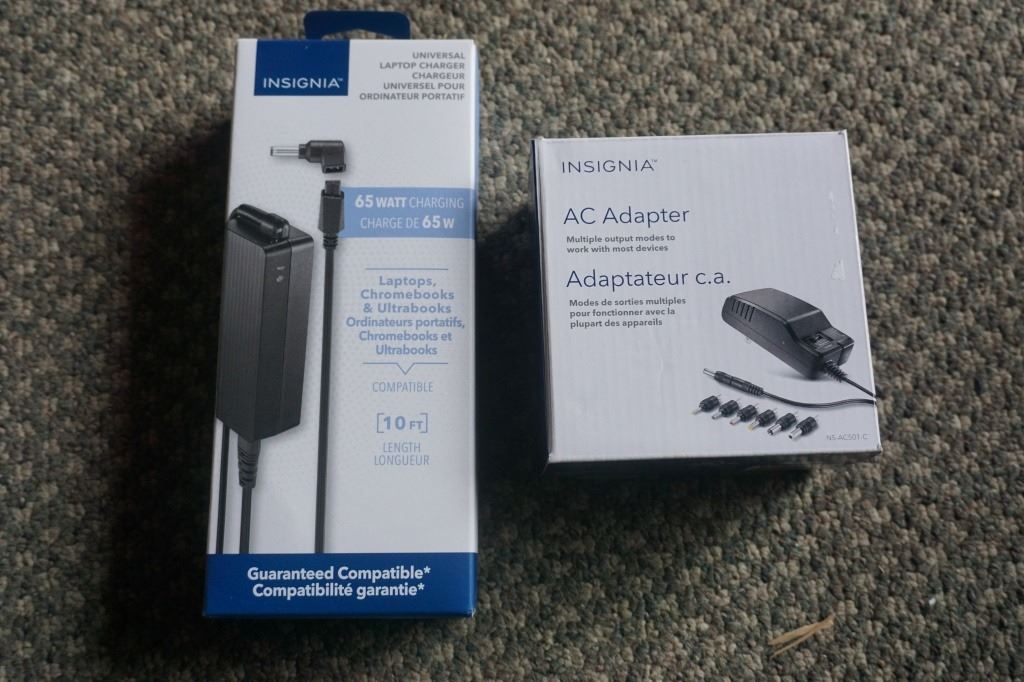 NEW INSIGNIA 65W UNIVERSAL LAPTOP CHARGER AND INSIGNIA 7 TIP AC ADAPTER SET - RETAIL $95
