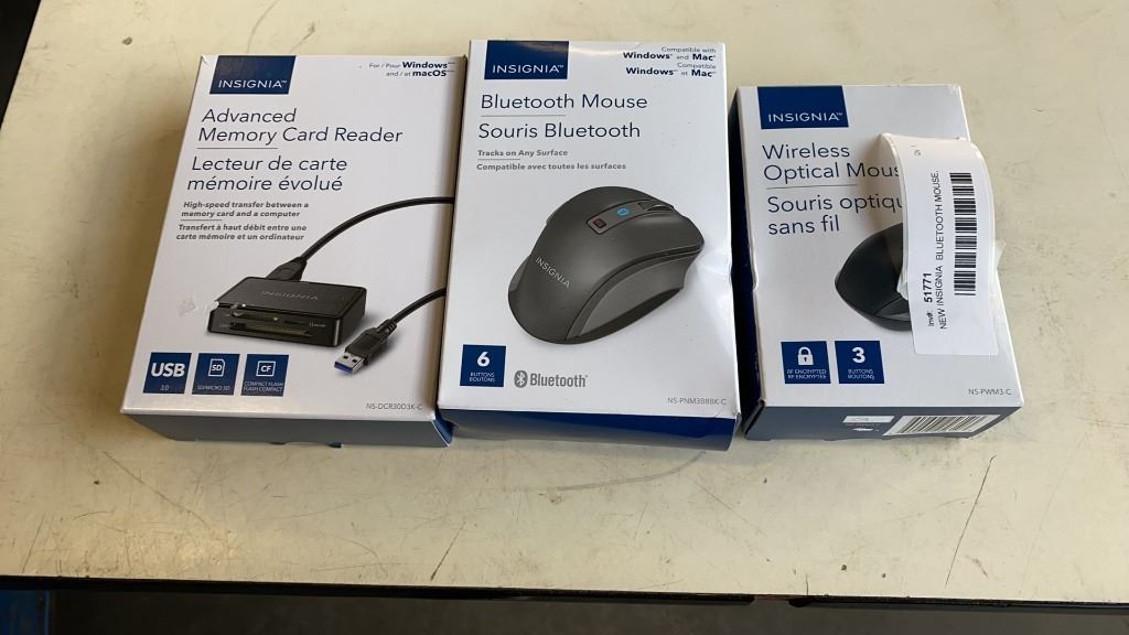 NEW INSIGNIA BLUETOOTH MOUSE, WIRELESS OPTICAL MOUSE AND ADVANCED MEMORY CARD READER