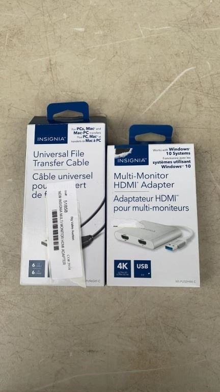 NEW INSIGNIA MULTI MONITOR HDMI ADAPTER AND UNVERSAL 6FT TRANSFER CABLE RETAIL $90