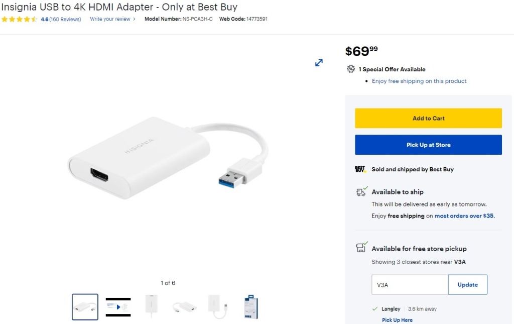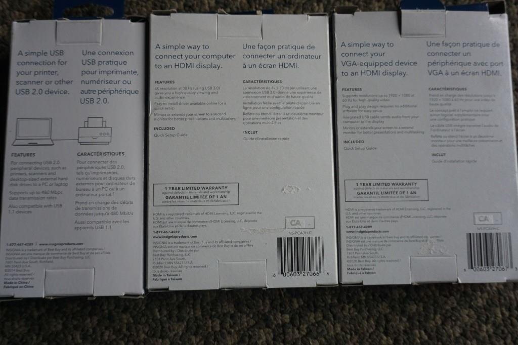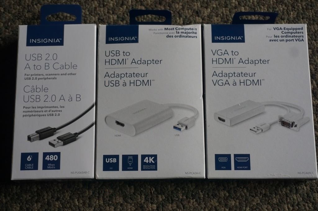 NEW INSIGNIA USB TO 4K HDMI ADAPTER, VGA/USB TO HDMI ADAPTER AND USB 2.0 A TO B CABLE - RETAIL $145