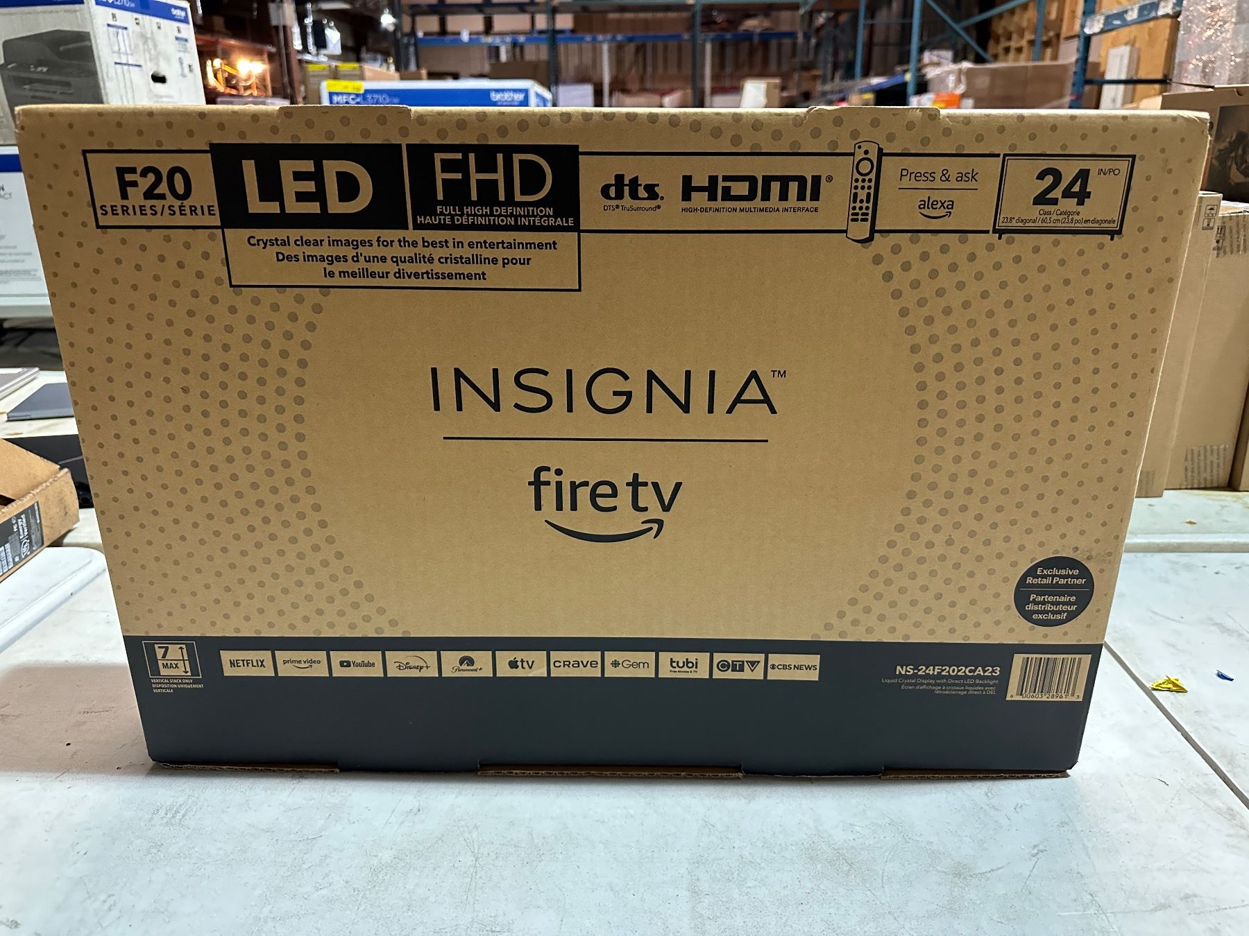 Retail - $300 Stream live TV and content from your favourite apps with the Insignia 24-inch smart TV. It's equipped with the Fire TV operating system and Alexa voice controls for easy access to movies, shows, and more. The LED-backlit display delivers a clear, bright 1080P picture, and the DTS TruSurround technology provides a high-quality sound experience.