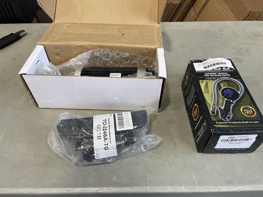 NEW JACO FLOWPRO DIGITAL TIRE INFLATOR GAUGE, NEW STARTER AND NEW TAILGATE REPLACEMENT HANDLE