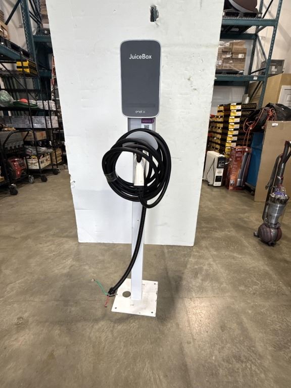 NEW JUICEBOX 32 AMP ELECTRIC VEHICLE CHARGING STATION WITH COMMERICAL METAL STAND, CAN BE WALL MOUNTED