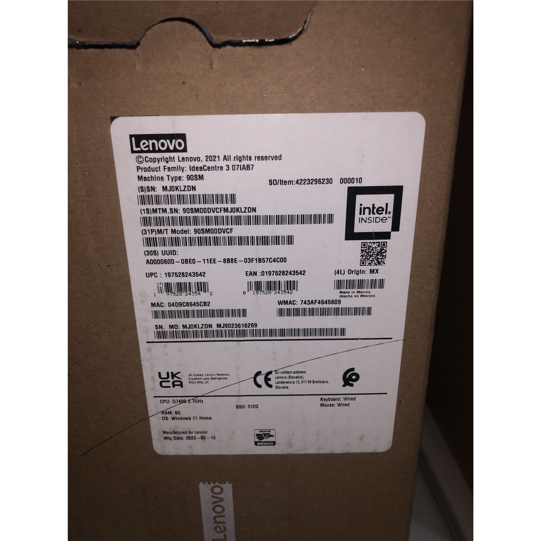 NEW Lenovo IdeaCentre 3i Desktop PC - (Intel Pentium Gold G7400/512GB SSD/8GB RAM/Win 11)