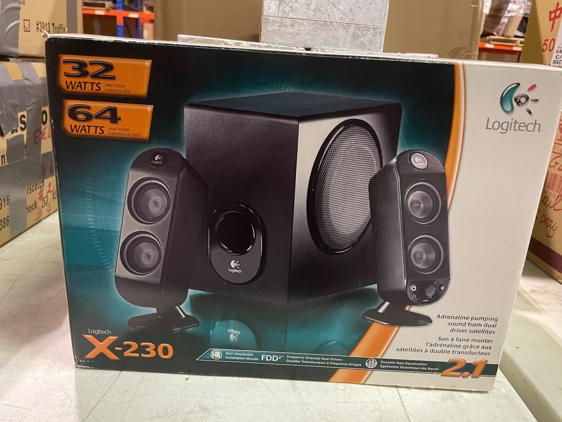 NEW Logitech X-230 Adrenaline dual driver satellite subwoofer PC speaker system