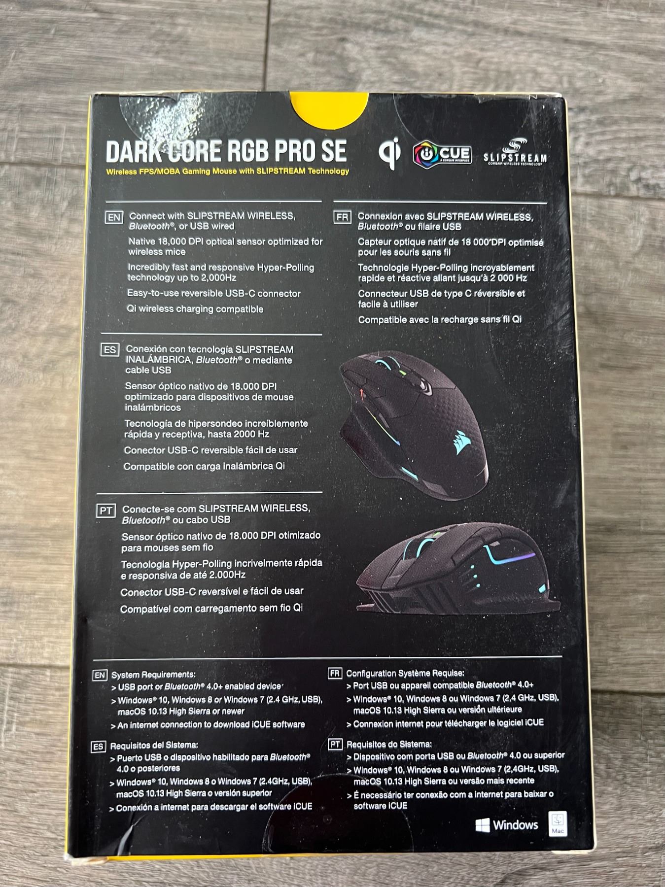 Lot of 1 Corsair dark core RGB PRO SE wireless mouse.
