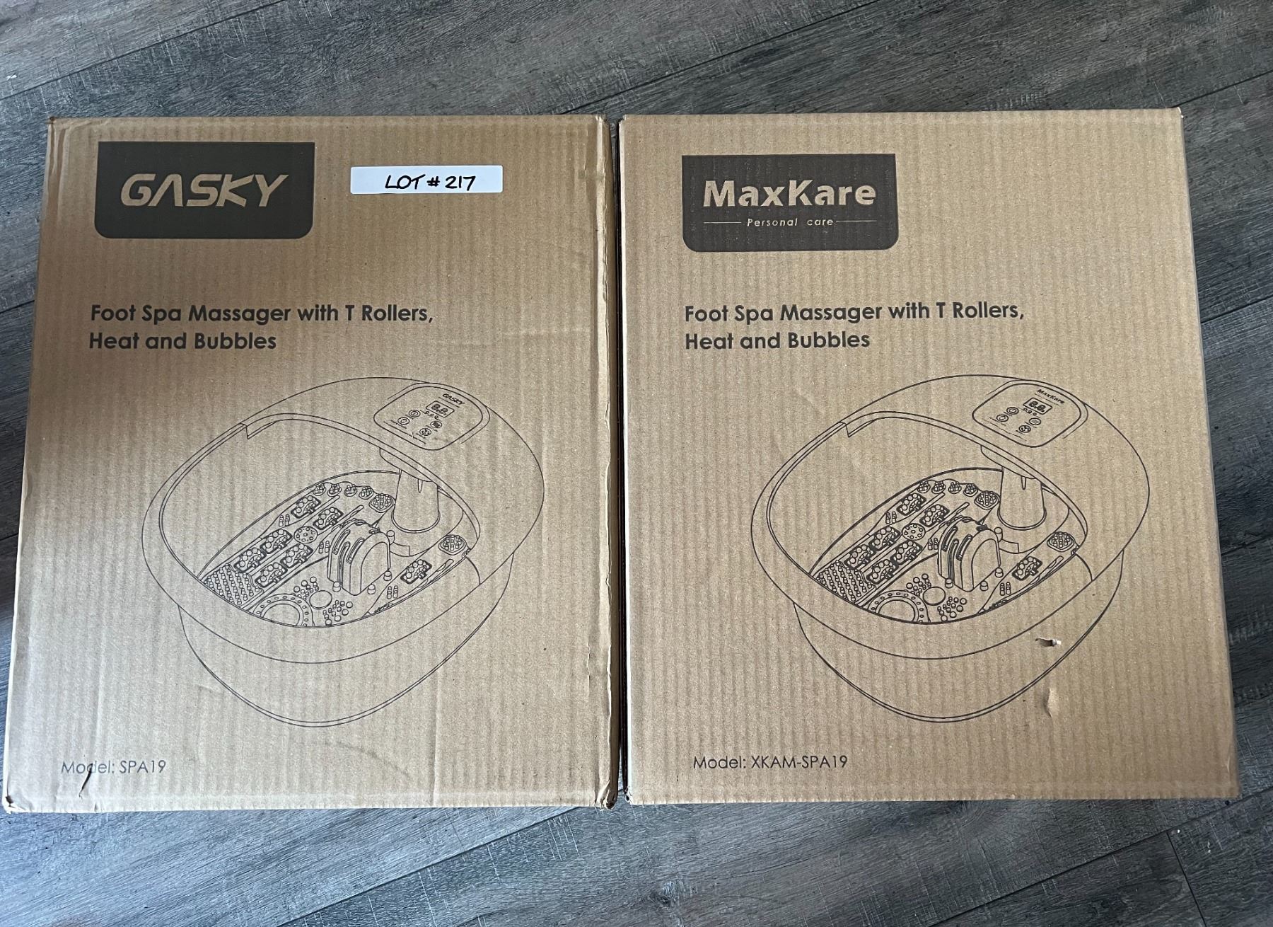 Lot of 2 brand new massaging heated foot spas with rollers and bubbles.