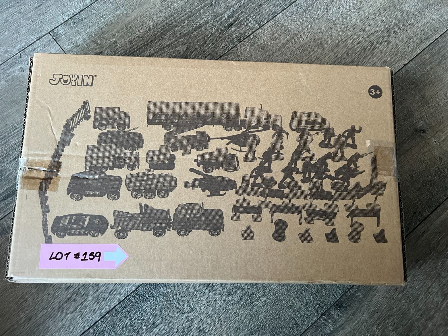 Lot of 3 boxes of city management kids diecast toy cars and figures.