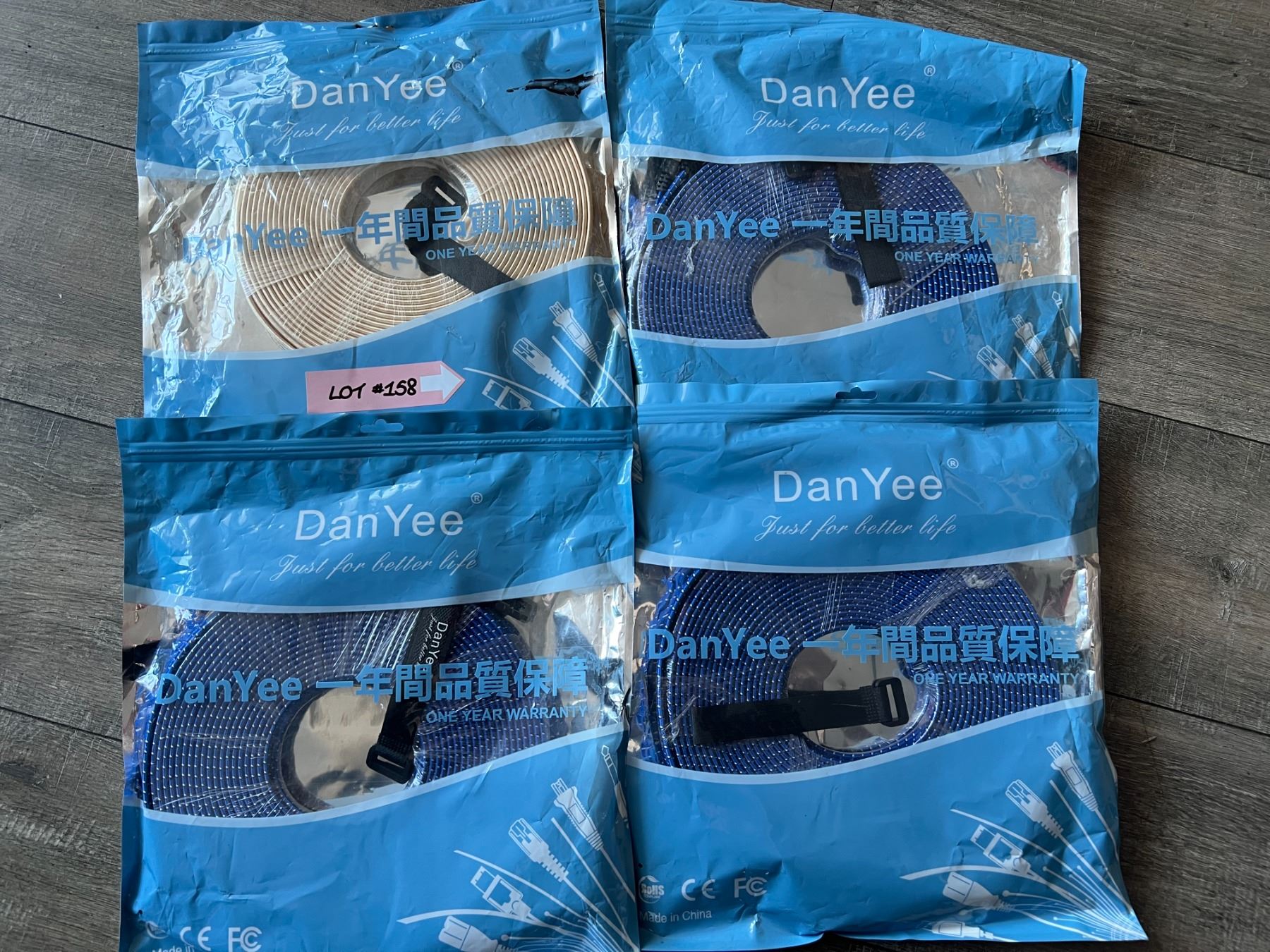 Lot of 4 assorted color & assorted length cat7 ethernet cables.