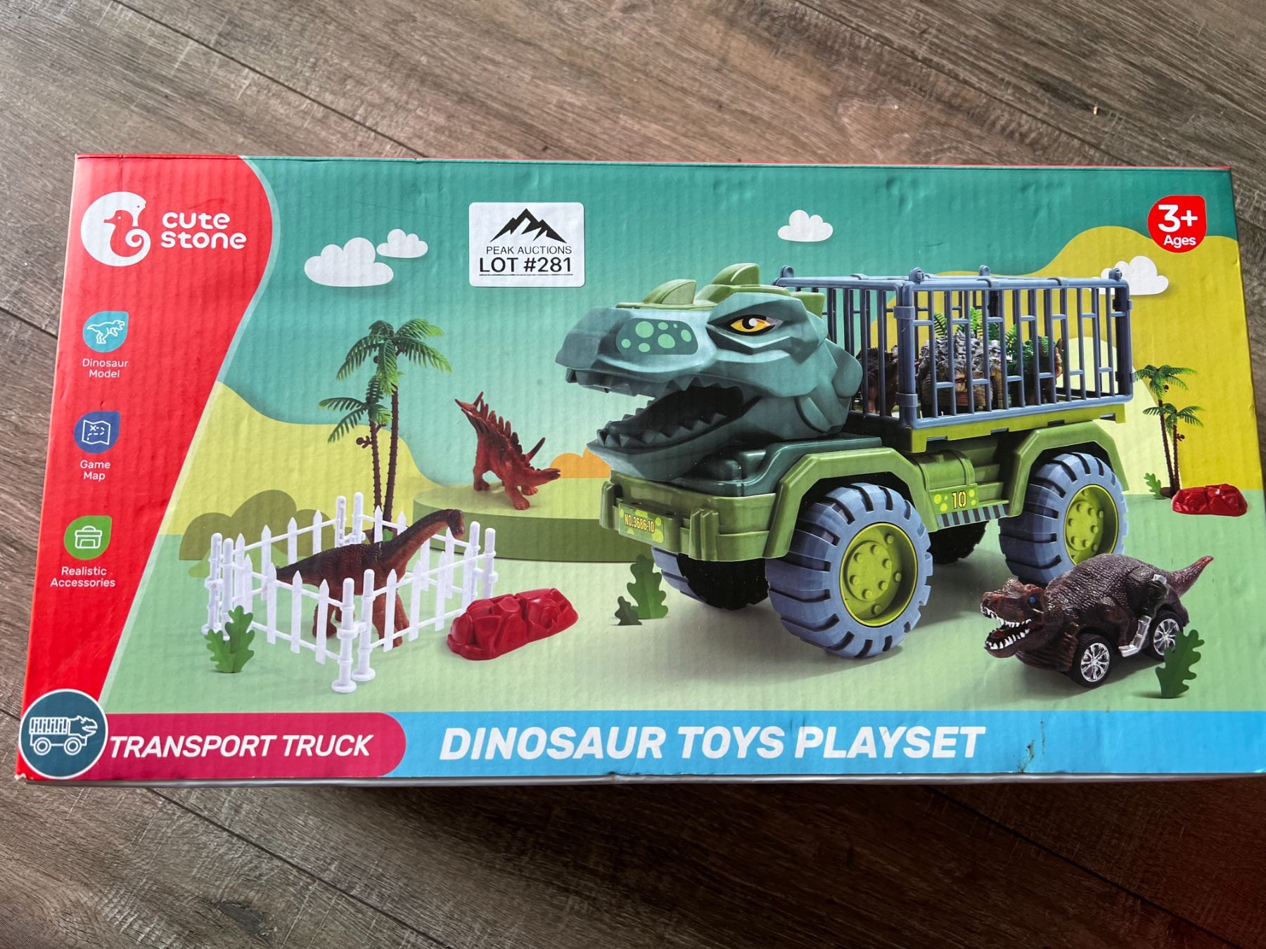 - Dinsoaur transported truck, figure, game map, and realistic accessories