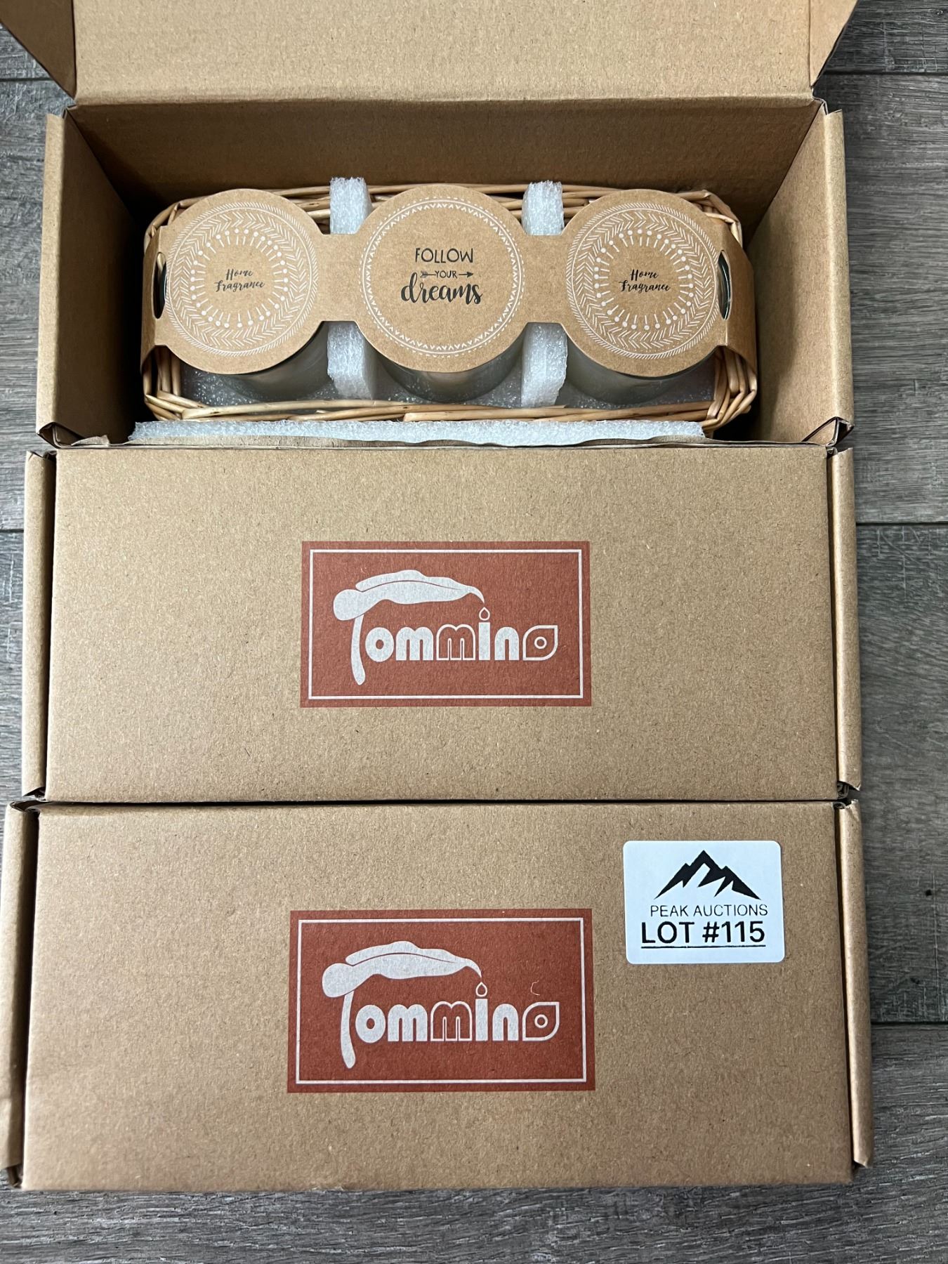 Lot of 3 Tommino Candles w/ Rattan Basket Holder