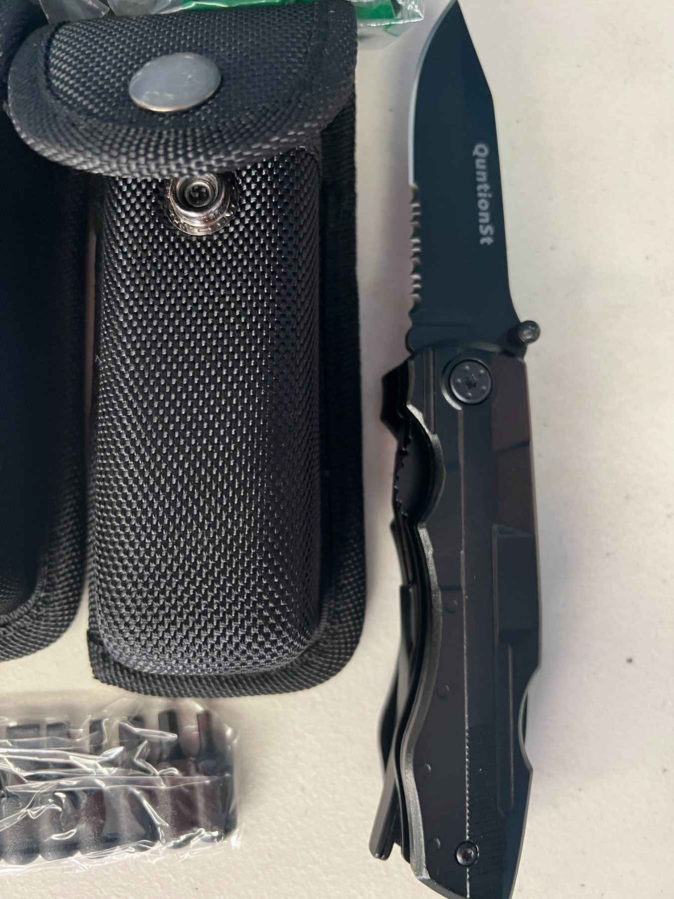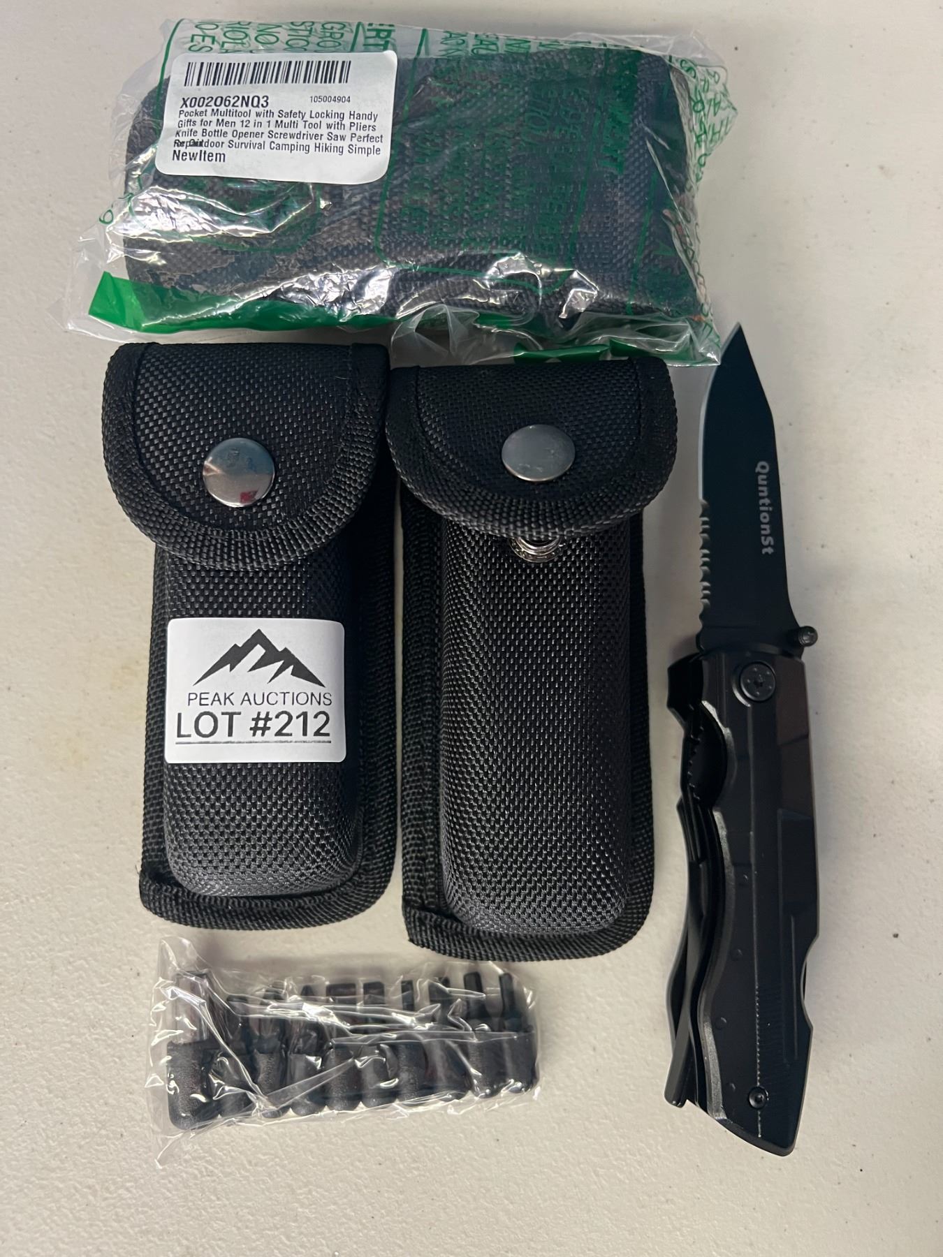 - 12in1 multi-tool (pliers, knife, screwdriver, bottle opener, wire cutter, etc.