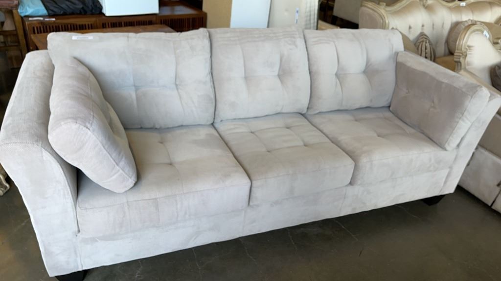 NEW MODERN GRAY MICRO SUEDE SOFA MSRP $1200