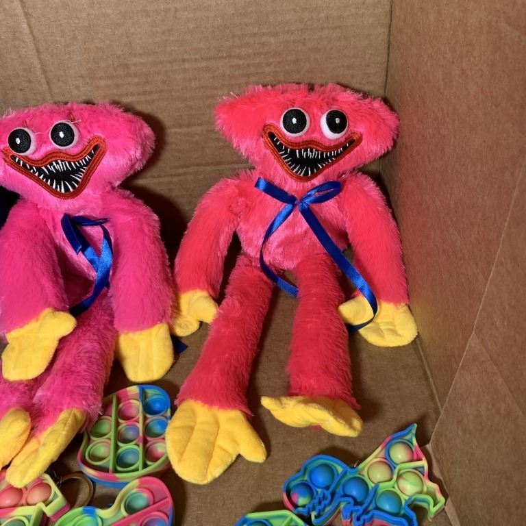 NEW MONKEY TAG PLUSH, 2 POPPY PLAYTIME KISSY MISSY PLUSH, NEW ROBLOX PLUSH, 30PC OF SILICONE CHICKEN FINGER SLINGS, 30PC OF SILICONE DINOSAUR FINGER SLINGS AND 40PC SILICONE POPPER KEYCHAINS