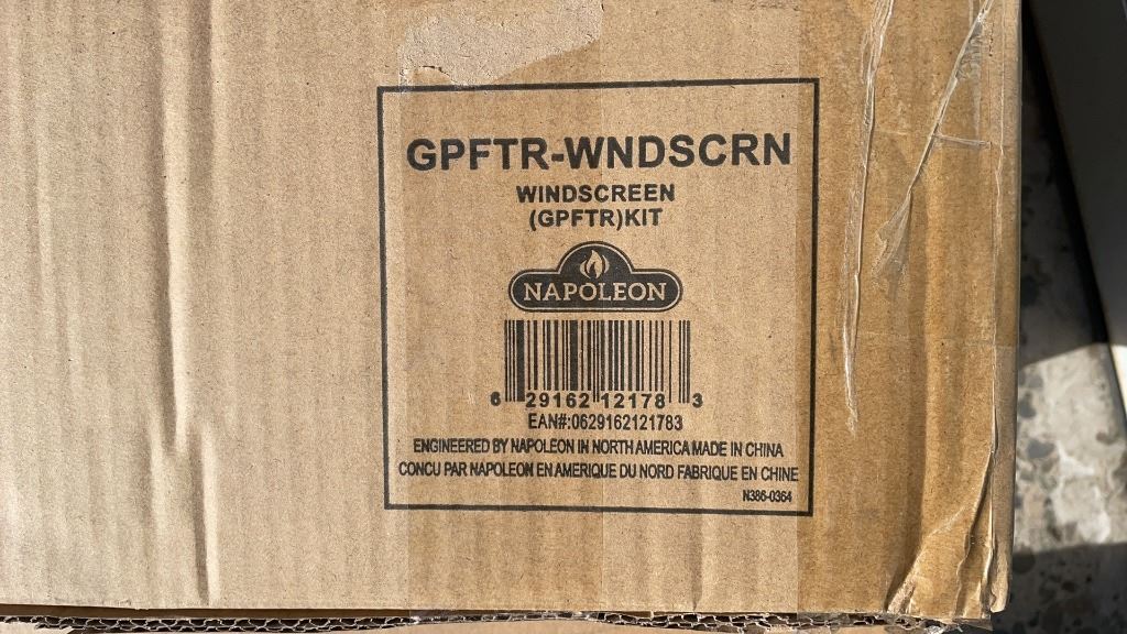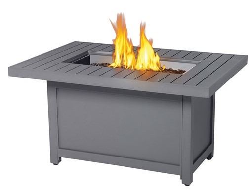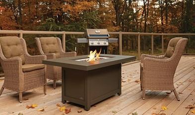 AS NEW NAPOLEAN HAMPTON RECTANGLE PATIOFLAME TABLE WITH GLASS WIND SHIELD - RETAIL $1449