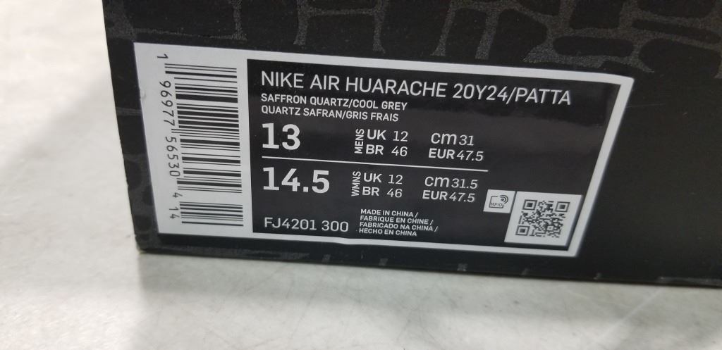 NEW NIKE AIR HUARACHE 20Y24 / PATTA SIZE US MENS 13, WOMENS 14.5