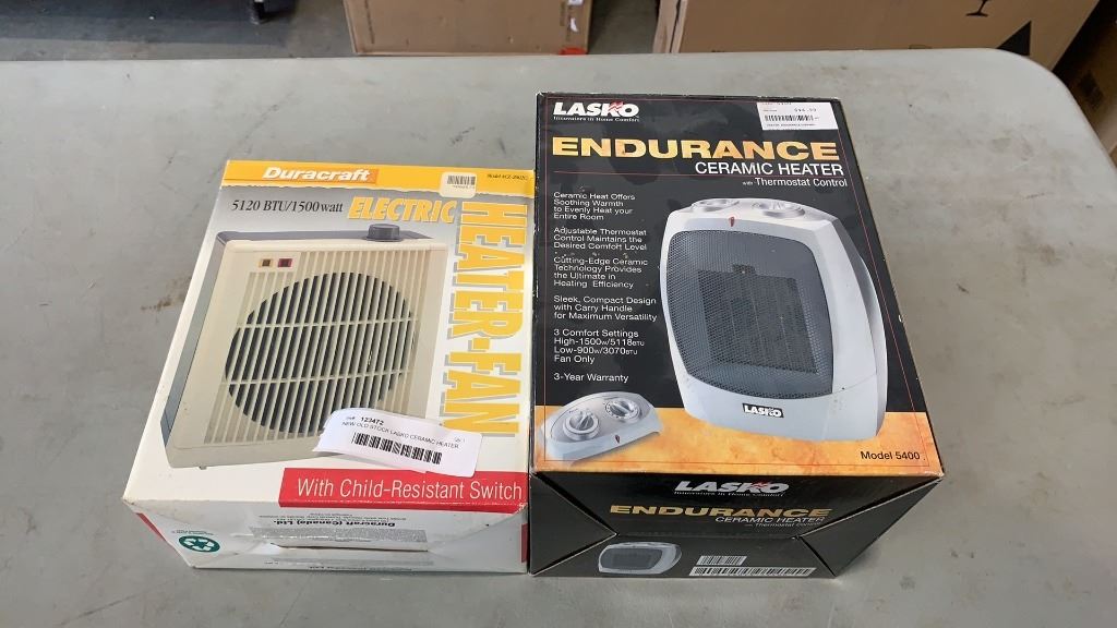 NEW OLD STOCK LASKO CERAMIC HEATER AND DURACRAFT ELECTRIC HEATER FAN
