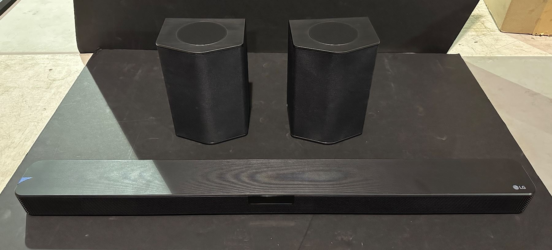 NEW OPEN BOX 3pc LG audio system - includes SN4 wireless soundbar w/ SPQ9-SR & SPQ9-SL active rear speakers - new demo units, no box, no cables