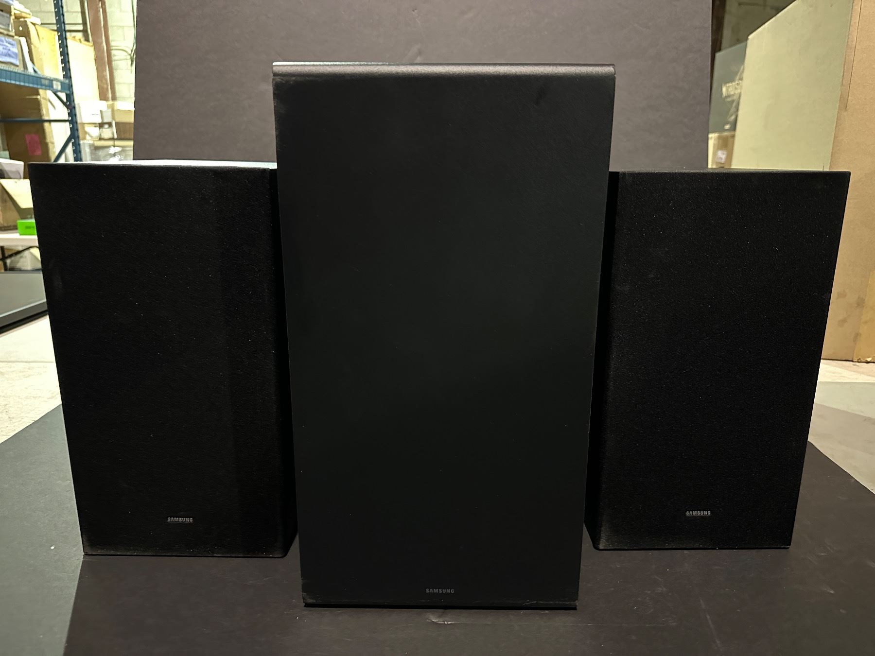 NEW OPEN BOX 3pc Samsung audio system - includes PS-WC99B subwoofer w/ PS-WB65D & PS-WC67B speakers - new demo units, no box, no cables