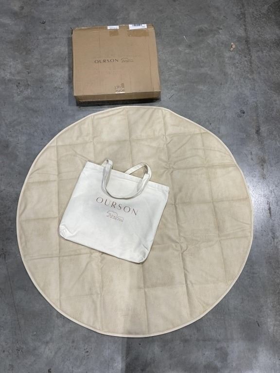 NEW OURSON PORTABLE ROUND PLAYMAT WITH CARRY BAG, CHESTNUT VEGAN LEATHER, 48 INCH ROUND