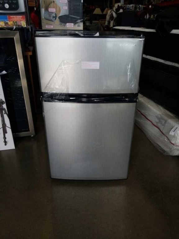 NEW OUT OF BOX INSIGNIA 2 DOOR COMPACT REFRIDGERATOR - STAINLESS, 2 DOOR, UPPER FREEZER - GUARANTEED WORKING