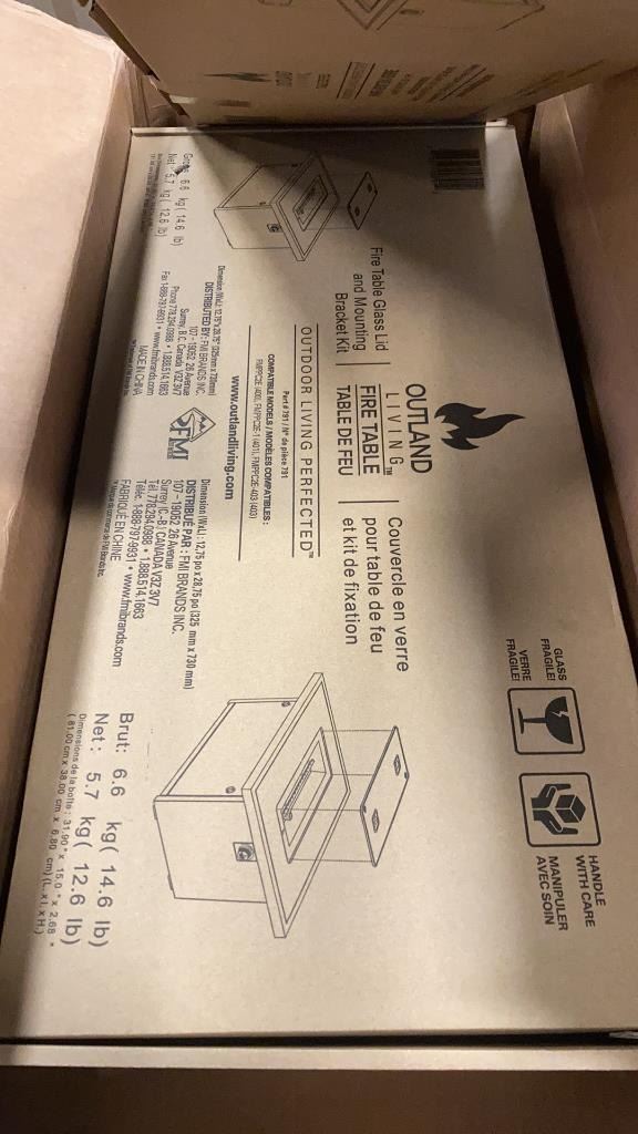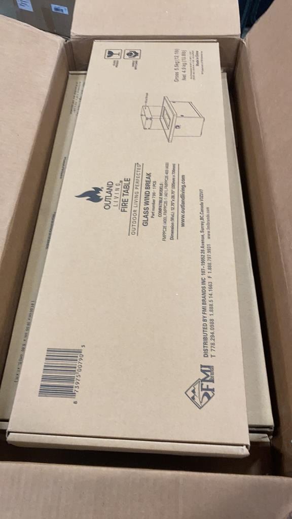 NEW OUTLAND LIVING FIRE TABLE GLASS WIND BREAK AND GLASS LID