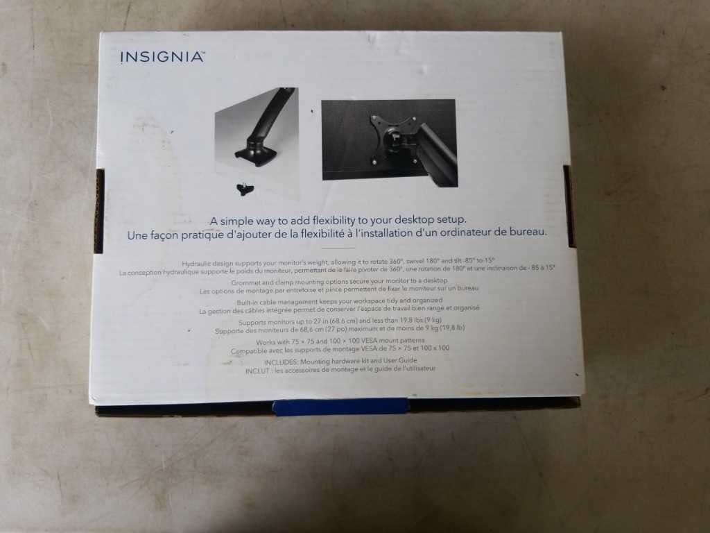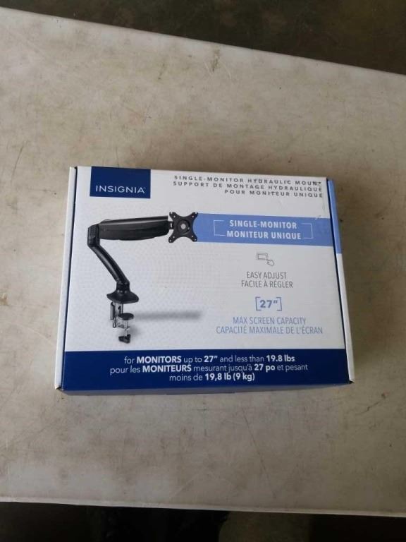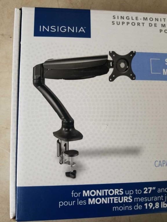 NEW OVERSTOCK INSIGNIA 27 INCH SINGLE MONITOR HYDRAULIC ARM MOUNT RETAIL $99