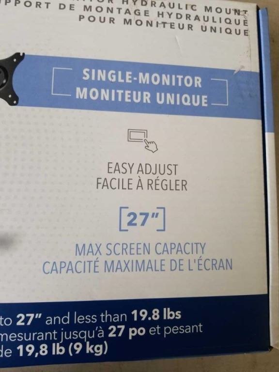 NEW OVERSTOCK INSIGNIA 27 INCH SINGLE MONITOR HYDRAULIC ARM MOUNT
