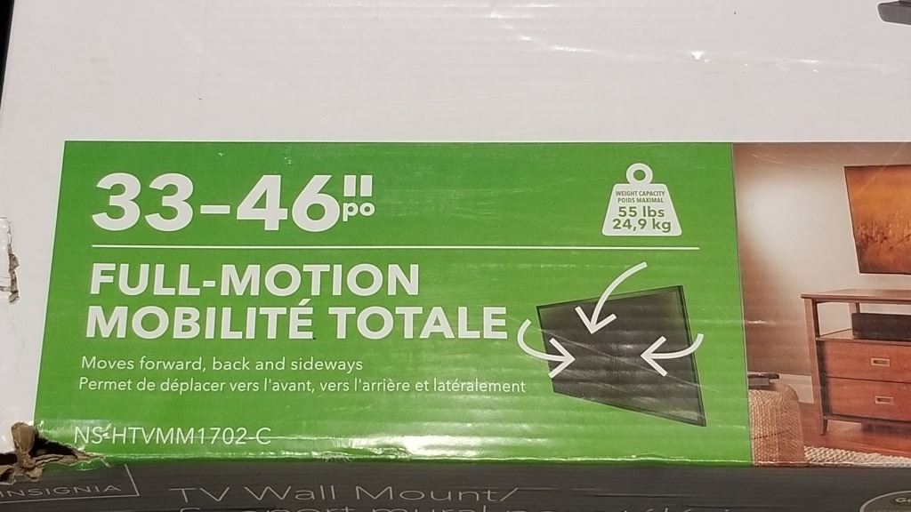 NEW OVERSTOCK INSIGNIA 33-46 INCH FULL MOTION TV WALL MOUNT