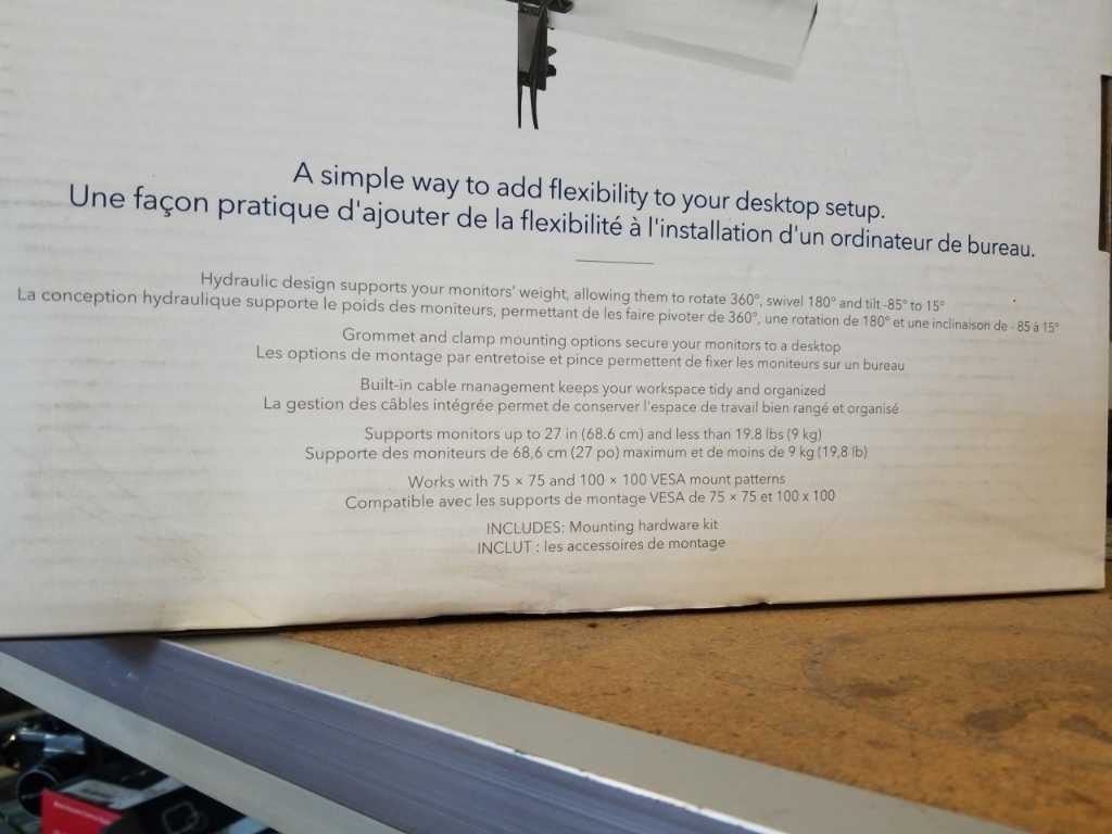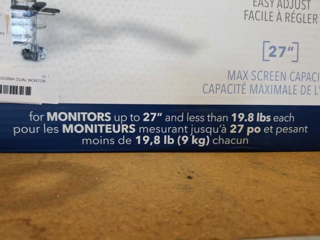 NEW OVERSTOCK INSIGNIA DUAL MONITOR HYDRAULIC MOUNT - 27 INCH