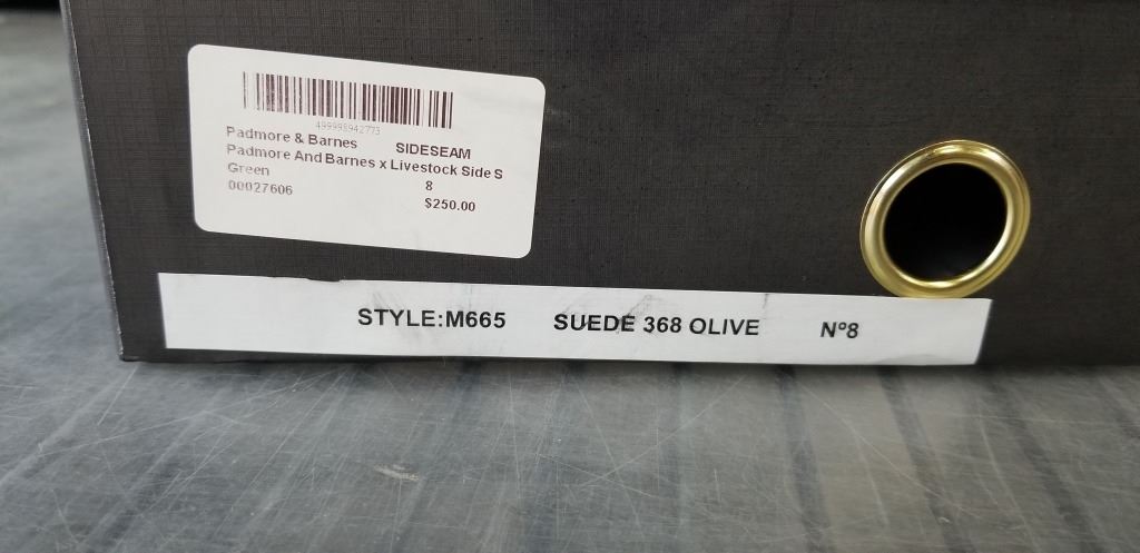 NEW PADMORE AND BARNES M665 SUEDE OLIVE SIZE 8 RETAIL $250