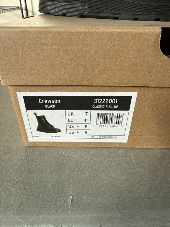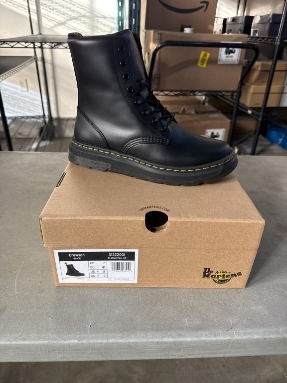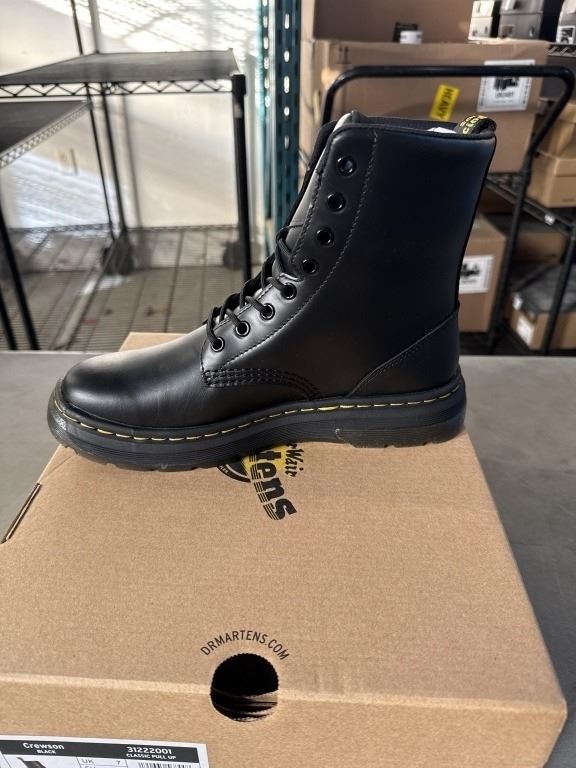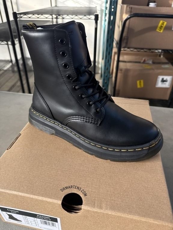 NEW PAIR OF DR. MARTENS AIR WAIR CREWSON BLACK CLASSIC PULL UP SIZE US MENS 8, LADIES 9