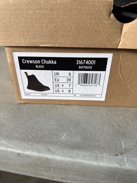 NEW PAIR OF DR. MARTENS AIR WAIR CREWSON CHUKKA BLACK BUFFBUCK SIZE US MENS 7, LADIES 8