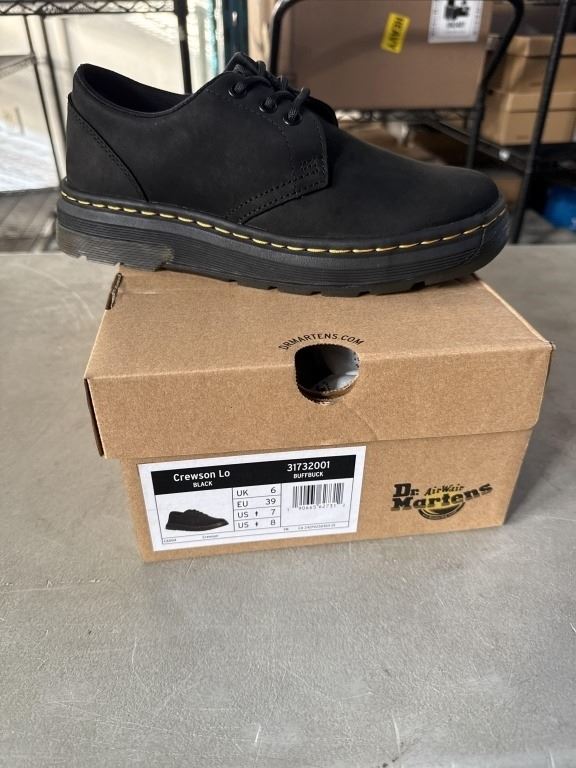 NEW PAIR OF DR. MARTENS AIR WAIR CREWSON LO BLACK BUFFBUCK SIZE US MENS 7, LADIES 8
