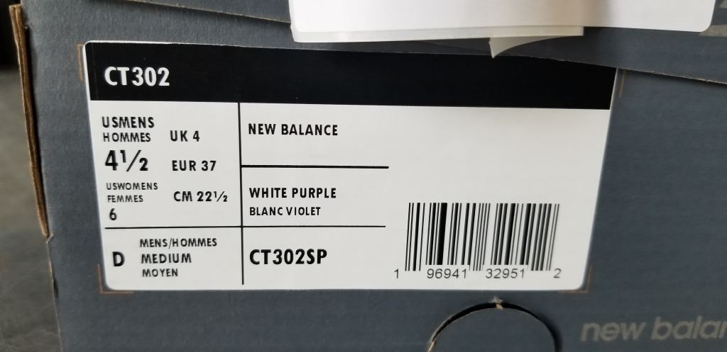 NEW PAIR OF NEW BALANCE CT302 WHITE PURPLE SHOES SIZE WOMENS 6, MENS 4.5