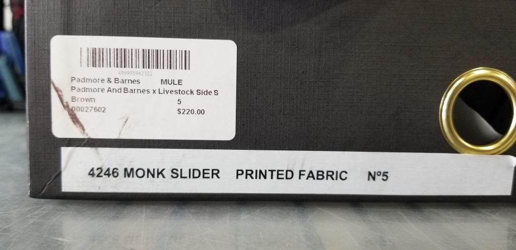 NEW PAIR OF PADMORE AND BARNES MONK SLIDER LIVESTOCK SIDE, SIZE 5 RETAIL $220