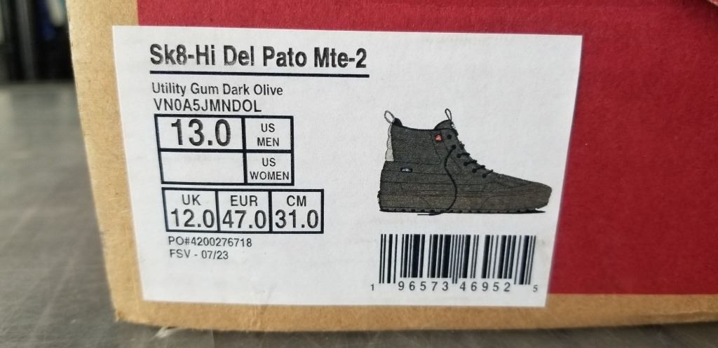 NEW PAIR OF VANS SK8-HI DEL PATO MTE-2 UTILITY GUM DARK OLIVE SIZE MENS 13