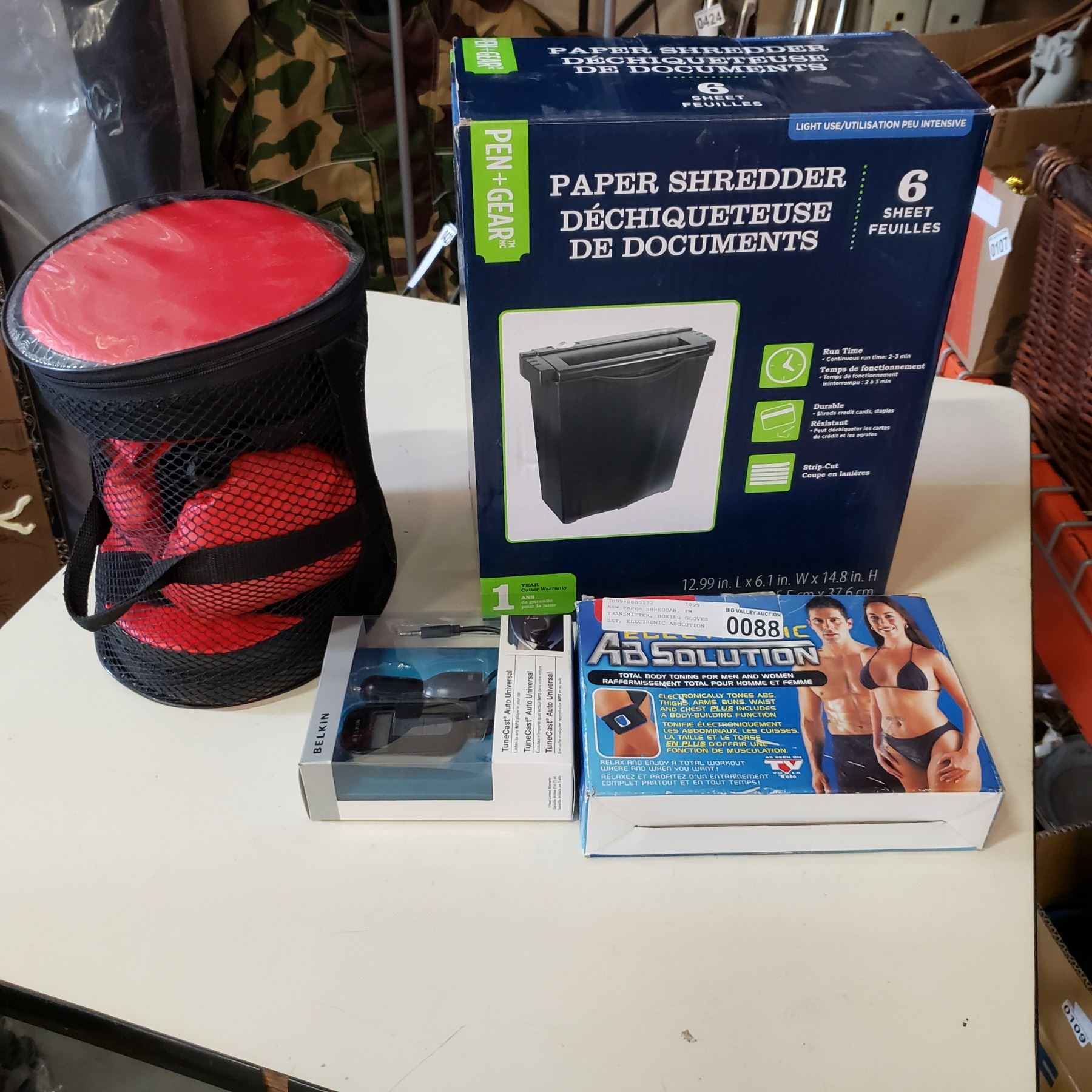 NEW PAPER SHREDDAR, FM TRANSMITTER, BOXING GLOVES SET, ELECTRONIC ASOLUTION
